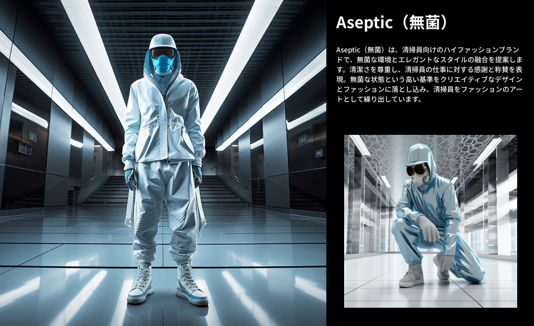 清掃員にフォーカスしたファッション性の高い高品質なウェアやマスクなどは、働く人たちの安全性や社会的にとても重要な役割を担っている事を表現しており、実際に今後はこういったデザインになっていきそうな現実感含めて素晴らしいなと思いました。