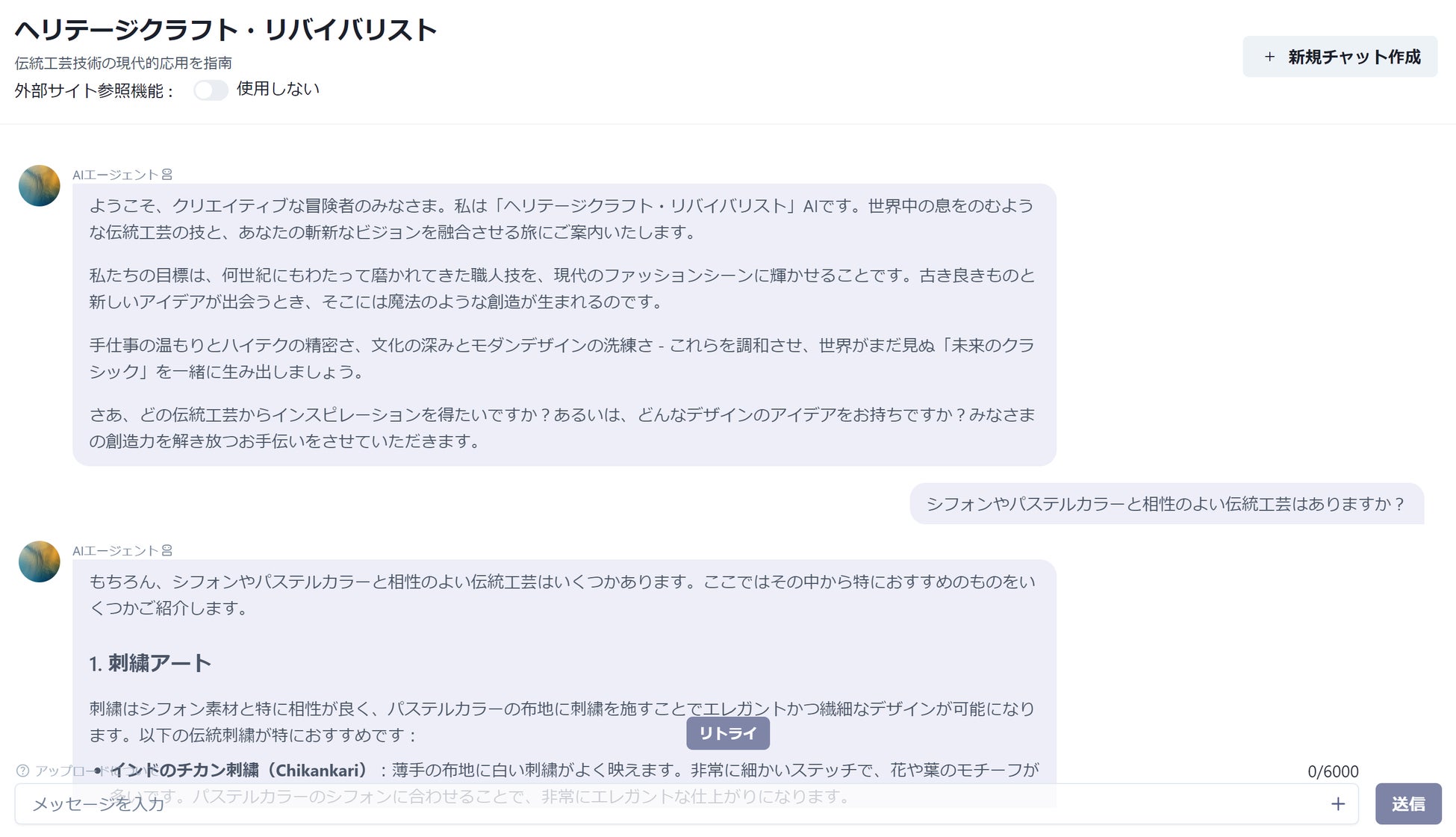 今回で2回目の開催となるファッションデザインコンテスト「TOKYO AI Fashion Week - 2025 S/S Contest」では新たな取り組みとして、参加者に生成AIを画像生成以外でも活用してもらうために、30種類のAIアドバイザーを無料で提供。未来と過去のスタイルを調和させる「フューチャーリトロ・ハーモナイザー」や、クラシックスタイルの現代的解釈を提案する「ヴィンテージリインベンターAI」などの専門知識を持ったAIに、「自分が考えたコンセプトに意見が欲しい」「ブランド名を考えたい」などといったことを相談できます。
